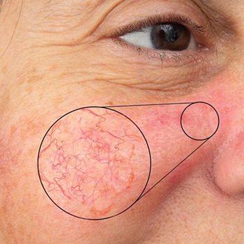 Also known as telangiectasia, these are visible red or purple blood vessels on the skins surface, they can look like spidery lines.